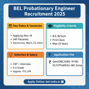 భారత్ ఎలక్ట్రానిక్స్ లిమిటెడ్ BEL Probationary Engineer Recruitment 2025 నోటిఫికేషన్ను అధికారిక వెబ్సైట్లో విడుదల చేసింది.