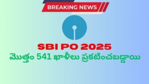 హలో ఫ్రెండ్స్…SBI PO 2025 Notification, ప్రొబేషనరీ ఆఫీసర్ పోస్టుల కోసం అధికారిక వెబ్సైట్ sbi.co.inలో విడుదల చేయబడింది. అధికారిక నోటిఫికేషన్ ప్రకారం మొత్తం 541 ఖాళీలు ప్రకటించబడ్డాయి.